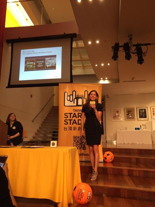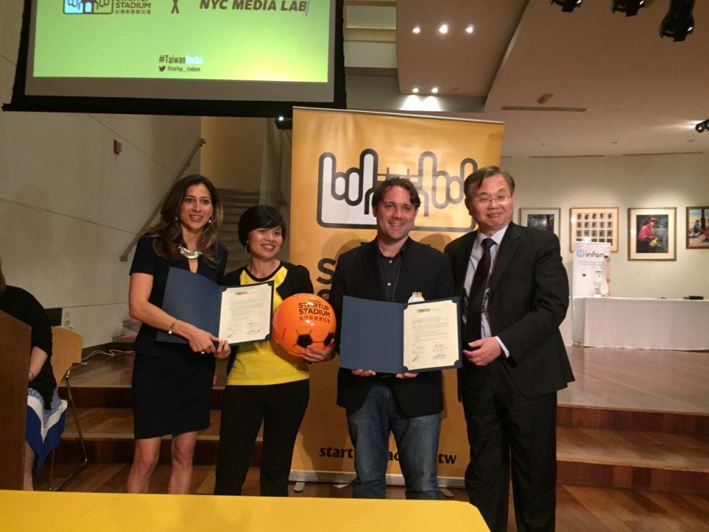 在駐美投資貿易服務處凌家裕主任的協助下,台灣新創競技場(TSS)帶領橫跨VR、AI、區塊鏈等物聯網及網路與行動裝置領域共 12 組國內優秀科技新創團隊於九月中首次造訪紐約,9月19日在駐紐約台北經濟文化辦事處大廳舉行Taiwan Rocks NYC台灣之夜,特別邀請到紐約市經濟發展局副局長Eleni D. Janis就紐約地區的創新動能做專題演講,並與紐約媒體實驗室(NYC Media Lab)簽訂備忘錄,透過培訓、諮詢及媒合的資源整建,共同推動台灣的媒體及 VR 虛擬實境領域科技新創進軍國際市場。