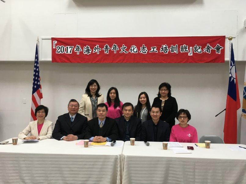 紐約僑教中心主任黃正杰、副主任王盈蓉、新澤西中文學校協會戴松昌僑務委員、FASCA紐約分會諮詢導師林泰德、李灼華、FASCA紐澤西分會諮詢導師李默君、任珮冬出席「2017海外青年文化志工培訓班」記者說明會,發布招生訊息,歡迎14-18歲青少年踴躍報名參加。