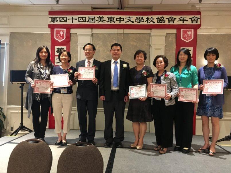 紐約僑教中心黃正杰主任(左4)與美東中文學校協會林宏圖會長(左3)及資深、優良教師合影。
