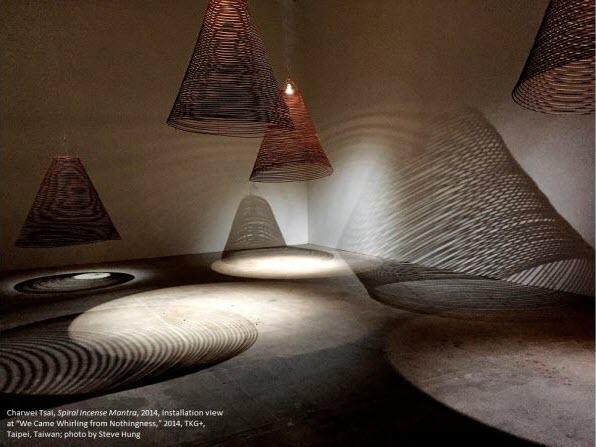 Tsai’s featured works include A Supplication, a water color drawing on rice paper, depicting the Guru Rinpoche mantra dispersing into space from a seed syllable at the center, and Spiral Incense with Mantras which consists of three large spiral incense pieces inscribed with the Guru Rinpoche mantra. As part of her work, Tsai will perform writing the mantra on the incense before it’s hung in the gallery on March 1 at 3 pm at the museum.