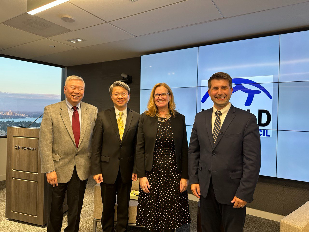 駐西雅圖辦事處與西雅圖世界事務協會(World Affairs Council of Seattle) 9月29日共同舉辦揭秘中國全球謀略座談會,邀請2049計畫研究所資深主任易思安(Ian Easton)暢談,西雅圖世界事務協會會長Jacqueline Miller主持,吸引近百位現場觀眾參加及交流互動。甄處長致詞強調,台灣位於民主國家對抗威權主義前線,長期面對中共滲透威脅,呼籲美國等理念相近國家共同合作抗衡中國。易思安主任則表示,中共全面性滲透各國,工具多元,全球應正視其戰略威脅,以確保自由的未來。1 2 3