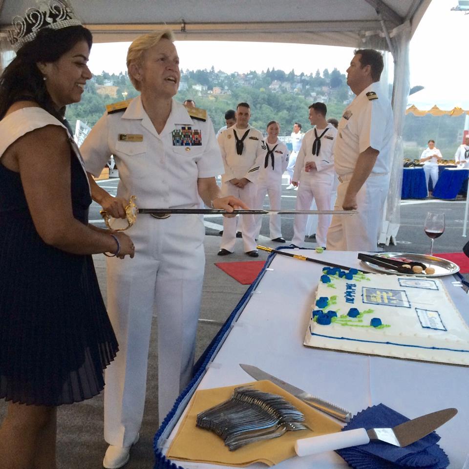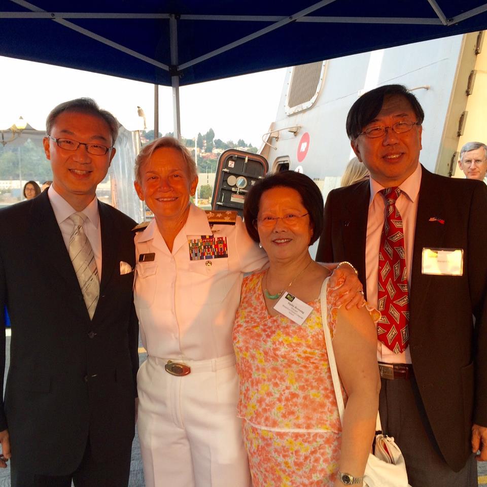 駐西雅圖辦事處姚金祥處長8月5日晚間在僑務委員周步岳先生及僑務促進委員王秀珠女士陪同下,出席美國海軍第三艦隊司令Nora Tyson上將在海軍安克拉治號兩棲運輸艦上舉行的西雅圖海洋節軍艦週酒會。