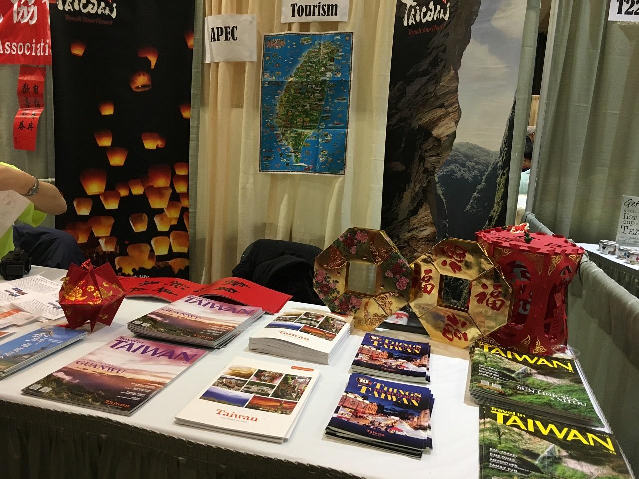 圖二、駐西雅圖辦事處提供台灣旅遊暨美食等文宣品攤位照片。