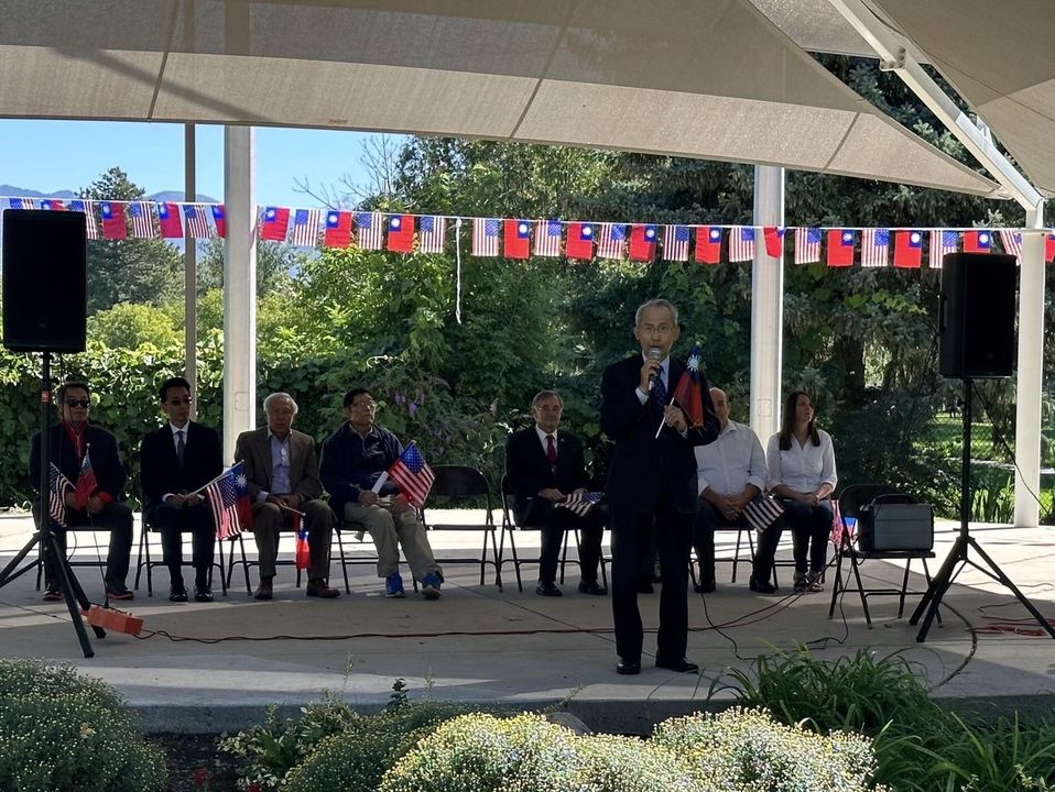 本處賴處長偕同仁於9月23日出席猶他州在鹽湖城國際和平公園舉行之慶祝中華民國112年雙十國慶升旗典禮及中秋佳節慶祝活動,猶他州州參議員Karen Kwan、州眾議員Walt Brooks及州政府外交禮賓處處長Franz Kolb等主流官員、鹽湖城秉公堂元老吳結興、僑務諮詢委員王建人、僑務顧問陳建銘、呂玲玲、大鹽湖區臺灣商會,以及大鹽湖區臺灣同鄉會會長陳瑞榮、僑務促進委員楊玉欣及各界僑領近200人共襄盛會。州政府外交禮賓處K處長在儀式中代表宣讀猶他州州長Spencer J. Cox慶祝雙十國慶賀電,表達該州與中華民國臺灣長久的情誼和合作關係。