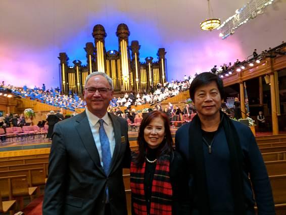 駐舊金山臺北經濟文化辦事處馬處長鍾麟夫婦應猶他州僑界及摩門教會之邀,於2017年2月24日至26日前往猶他州分別參加新春表演活動及參訪。2月26日上午前往摩門教聖殿音樂廳聆聽知名Tabernacle Choir的全球實況轉播演唱會,並由Tom Heath及Scott Nixon (馬處長夫人身旁站立者)等摩門教會元老,親自帶領導覽馬處長鍾麟夫婦暨北加州臺灣社團30人訪演團,參觀聖殿。
