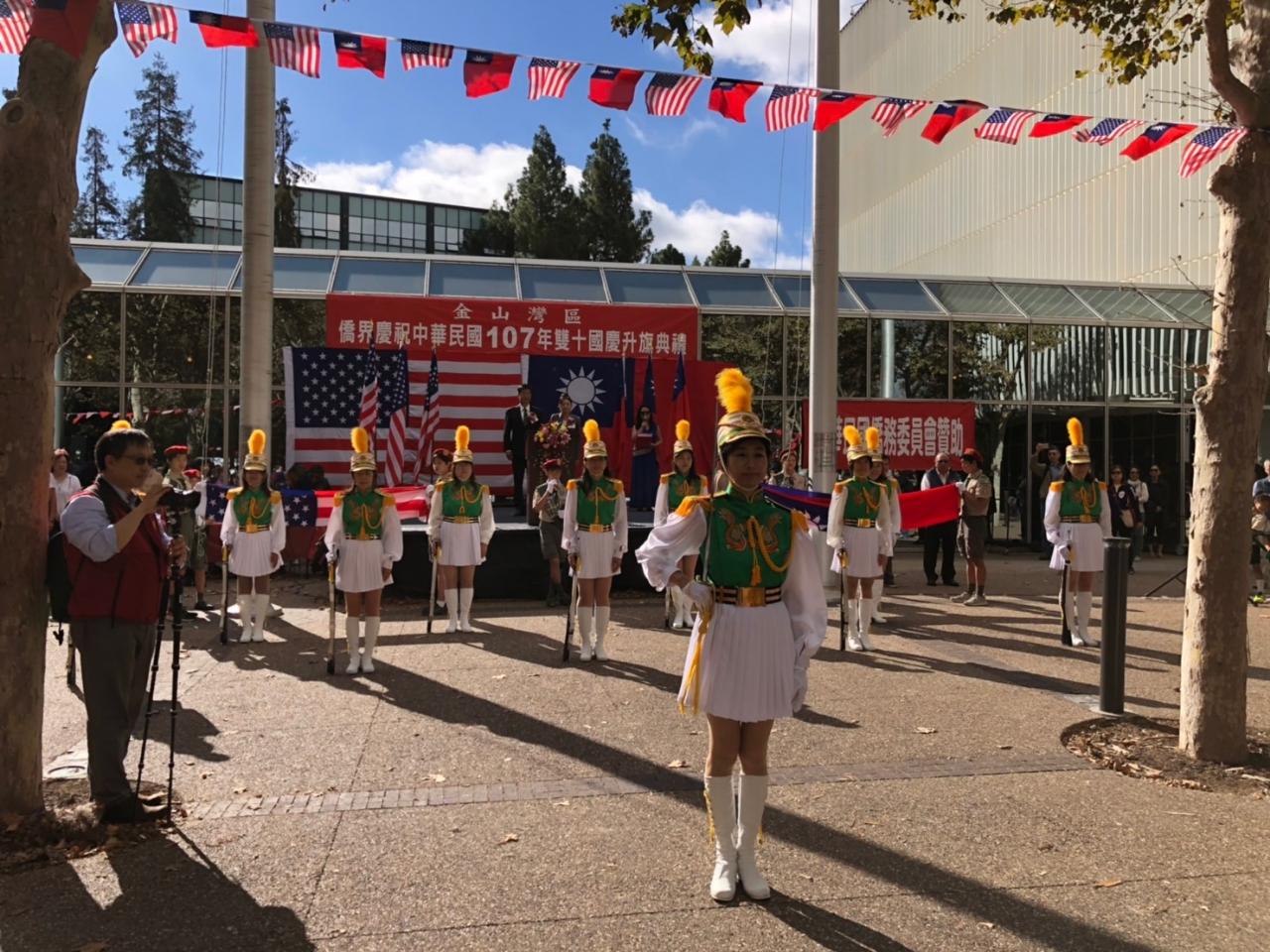 中華民國107年雙十國慶南灣升旗典禮10月6日上午10時10分在Santa Clara County廣場隆重舉行,典禮首先由精彩舞獅表演揭開序幕,隨後由中華民國陸軍官校旅美同學會旗隊護送國旗,北加州北一女校友會儀隊、海外青年文化志工旗隊及童軍408團擔任升旗手,青天白日滿地紅國旗冉冉上升,場面莊嚴盛大。IMG_4714