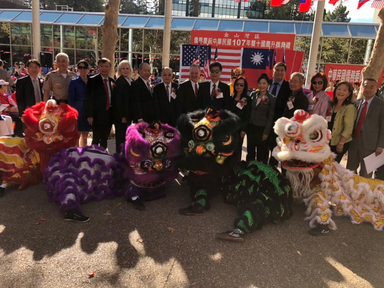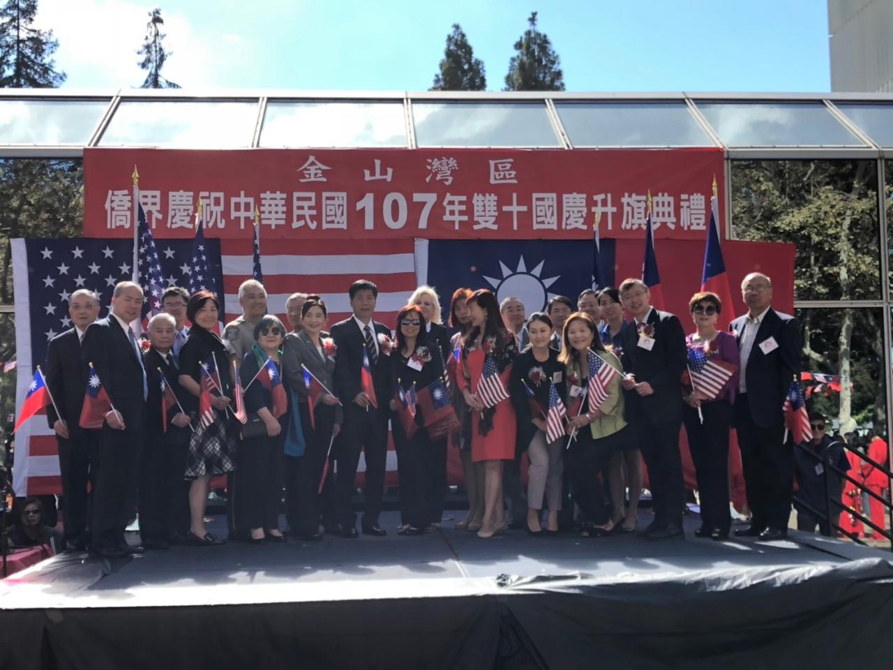 金山灣區國慶委員會主任委員魏德珍、駐舊金山辦事處處長馬鍾麟、金山灣區僑教中心主任閻樹榮、Santa Clara縣議長Dave Cortese、縣警長Laurie Smith、副警長Rick Sung、Fremont市長高敘加、Cupertino市長Darcy Paul、Saratoga市長代表張琛女士、學區委員潘欣欣、魏虹等主流政要、國慶籌備委員