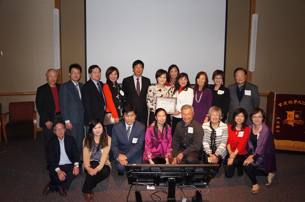 北加州輔仁大學校友會12月8日下午在Santa Clara市Intel SC9 Auditorum邀請臺灣主播沈春華舉辦「迎風前進-我們的新媒體時代」演講會,分享從事媒體多年來心得,以及對於新世代媒體趨勢的觀察;駐舊金山辦事處處長馬鍾麟、金山灣區僑教中心主任閻樹榮、副主任鍾佩珍、僑務委員蔡秀美、陳松、北加州輔仁大學校友會會長邱佩芝以及僑學各界約150人出席。