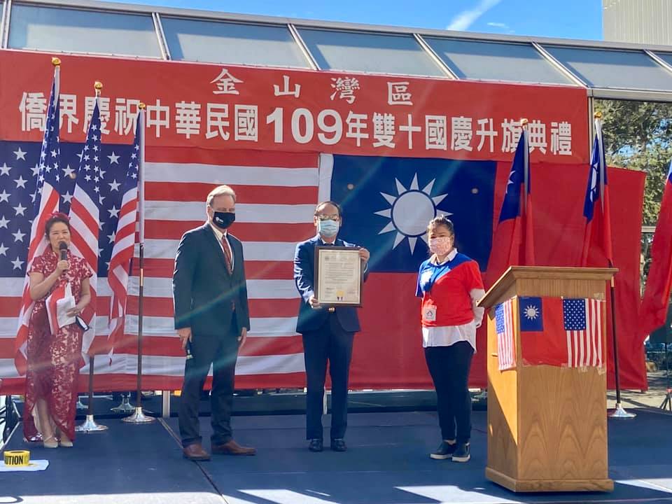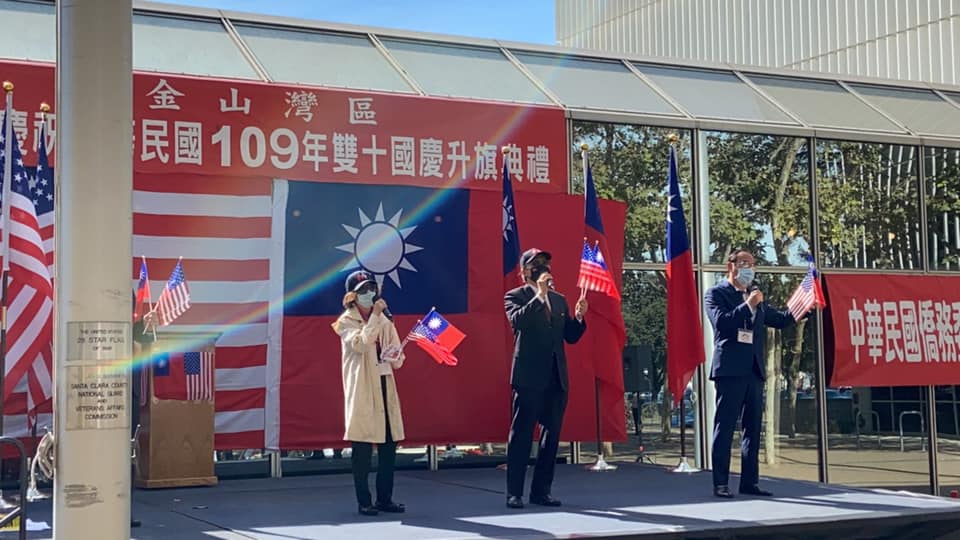 中華民國109年雙十國慶南灣升旗典禮10月10日上午於聖塔克拉拉郡(Santa Clara County)政府廣場舉行,雖然因防疫規定,參加人數僅能限制在60人,但參與僑胞熱情不減,與金山灣區國慶委員會主任委員王進德、本處賴處長及經文處同仁、僑務委員呂玉貞、蔡秀美、李漢文、李文雄、僑務諮詢委員魏德珍、林美蓮、將要角逐加州州參議員的南灣聖塔克拉拉郡議員Dave Cortese、Fremont市長高敘加、市議員Shao Yang、Santa Clara市市議員Teresa O’Neill、加州聯邦眾議員Ro Khanna (D-CA)選區代表Hiep Nguyen 、加州州眾議員朱感生選區代表Simeone Chien等共同歡欣慶祝國慶。