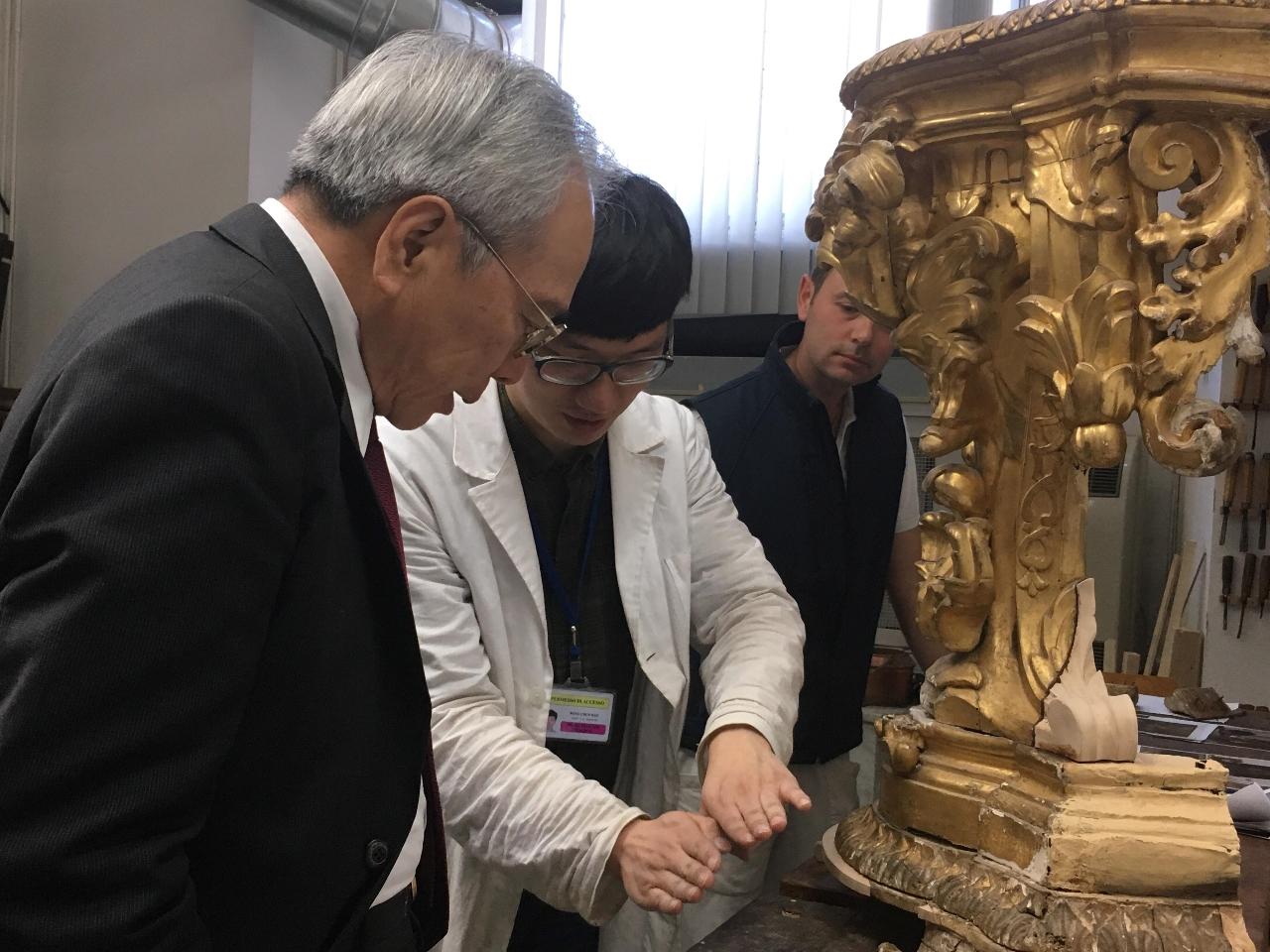 駐教廷大使李世明日前特別前往梵蒂岡修復室參觀,關心王俊豪的實習生活,王俊豪所屬的「繪畫及木器修復工作室」主任派瑟哥提(Francesca Persegati)親自導覽,介紹梵蒂岡博物館擁有稱羨全球收藏品的背後,有一群每天待在實驗室的幕後功臣,盡心盡力地投身於文物修復工作。