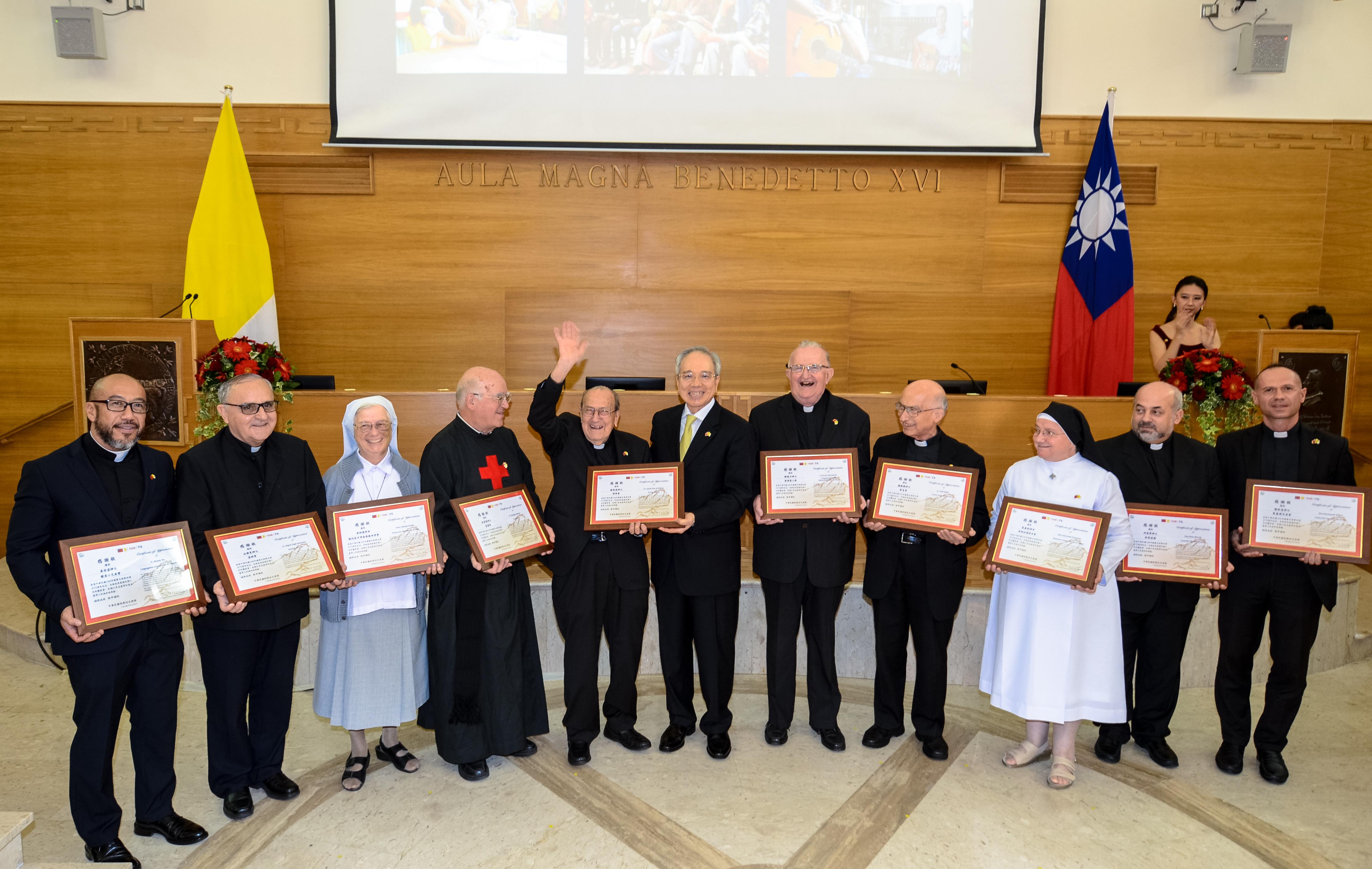 2017年駐教廷大使館為慶祝台梵建交75週年,特別頒發十位來台奉獻多年的外籍神父修女「感謝狀」,山樂曼即為其中一位授獎神父。