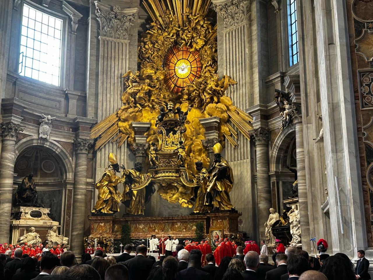 本館賀大使忠義夫婦於11月3日上午出席教宗良十四世(Pope Leo XIV)在聖伯多祿大教堂主持之紀念先教宗方濟各及今年以來逝世的樞機主教與主教追思彌撒(Eucharistic Celebration for the Late Pope Francis and Cardinals and Bishops who died during this year),樞機主教團、駐教廷外交團及天主教會神職人員代表等近200人出席。賀大使夫婦於彌撒前向教廷官員及多位駐教廷使節等致意。