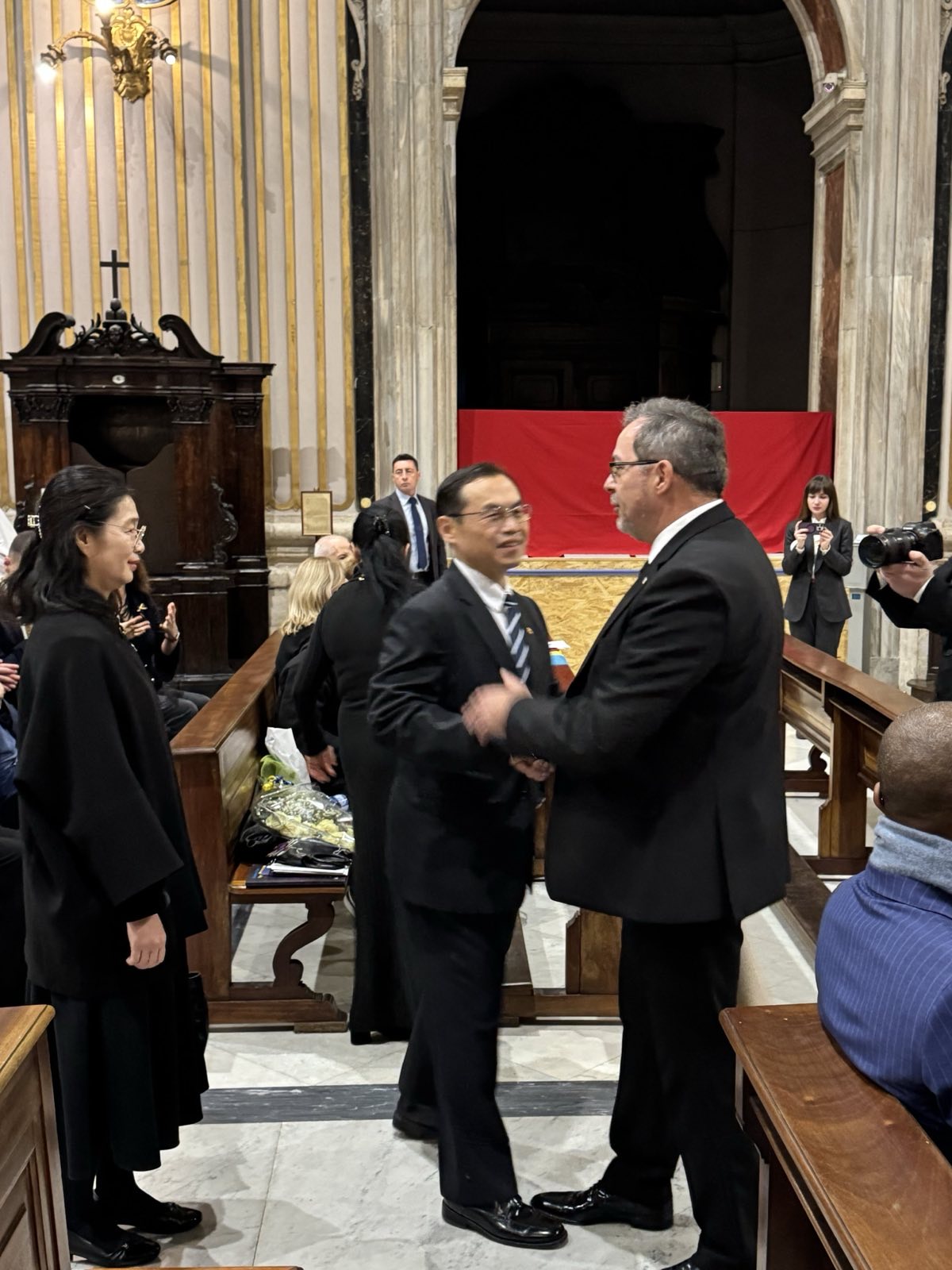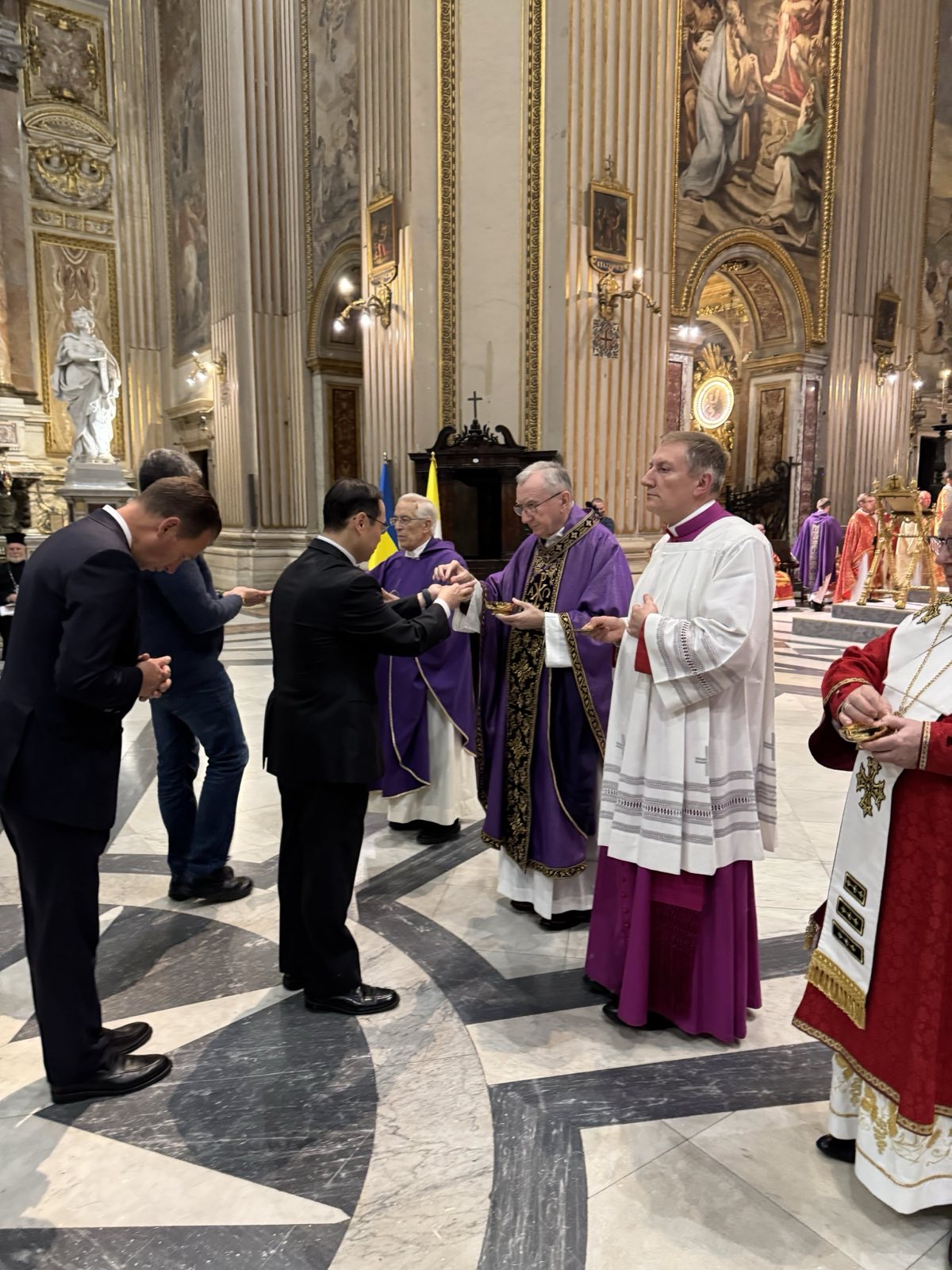 賀忠義大使夫婦11月20日出席由烏克蘭駐教廷大使館在羅馬聖安德肋堂(Sant’ Andrea Della Valle)舉辦的紀念1932-33年烏克蘭大饑荒(the Holodomor)受害者追思彌撒,以紀念當年受害的無辜民眾。彌撒由教廷國務院院長帕洛林樞機主教(Card. Pietro Parolin)主禮。
