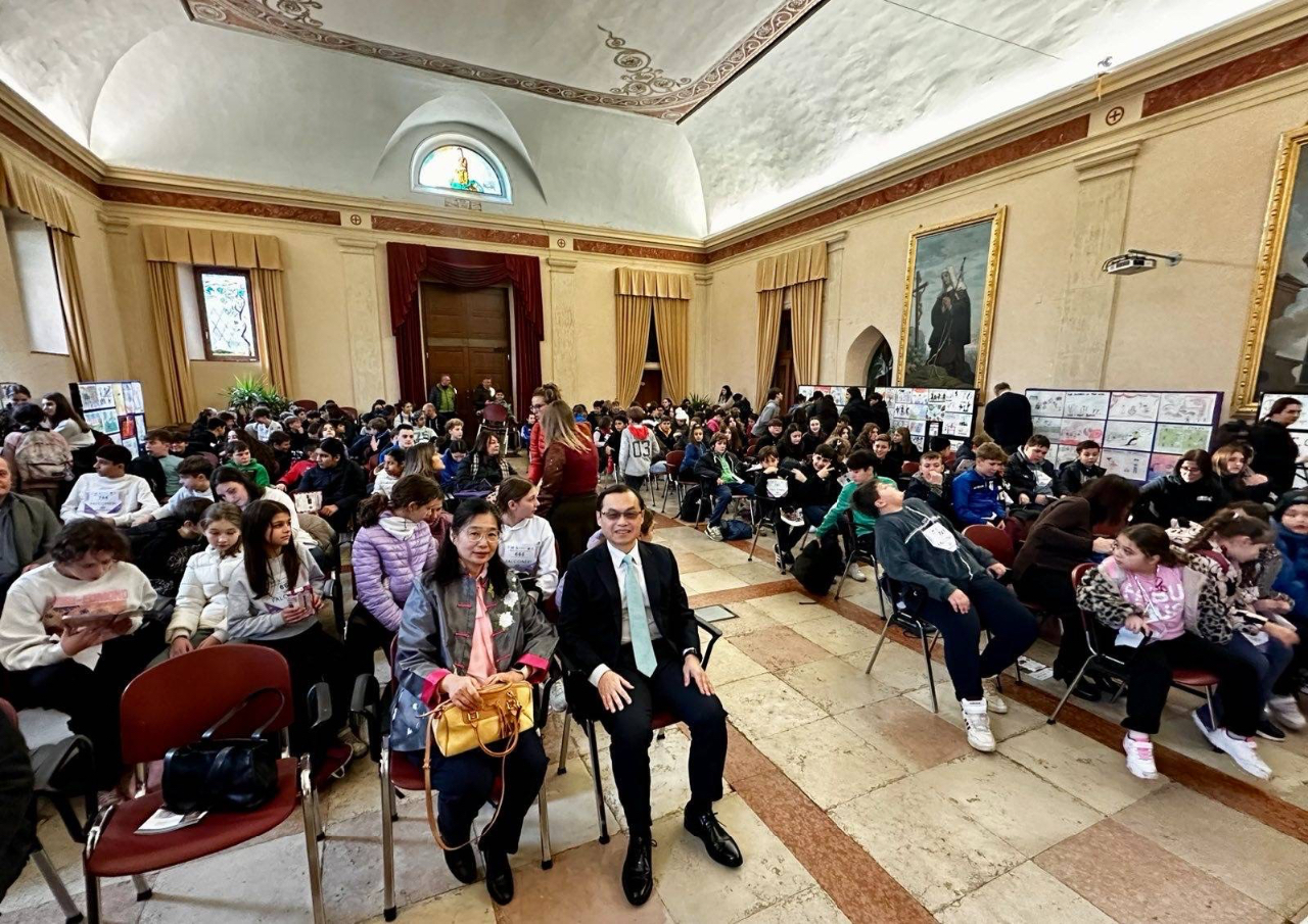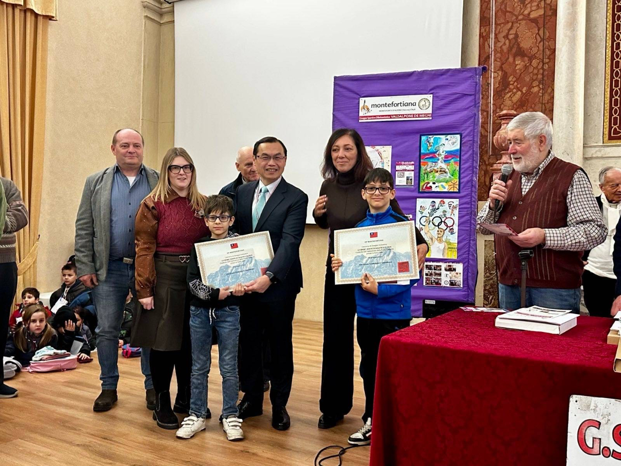 蒙市路跑協會P主席在頒獎典禮致詞表示,感謝台灣駐教廷大使館多年來對蒙市年度最重要的慈善盛事予以支持,每年均贊助獎品及獎狀。賀大使致詞表示,透過繪畫藝術教育兒童自由地表達思想及學習幫助社會中弱勢朋友甚具意義,此精神亦與台灣及天主教靈醫會在世界各地推動人道關懷工作相契合,2025年希望禧年雖巳結束,該協會的慈善活動接續為2026年開啟新的希望篇章,讓和平與博愛薪火相傳,嗣頒發獎狀及獎品予得獎的孩童。