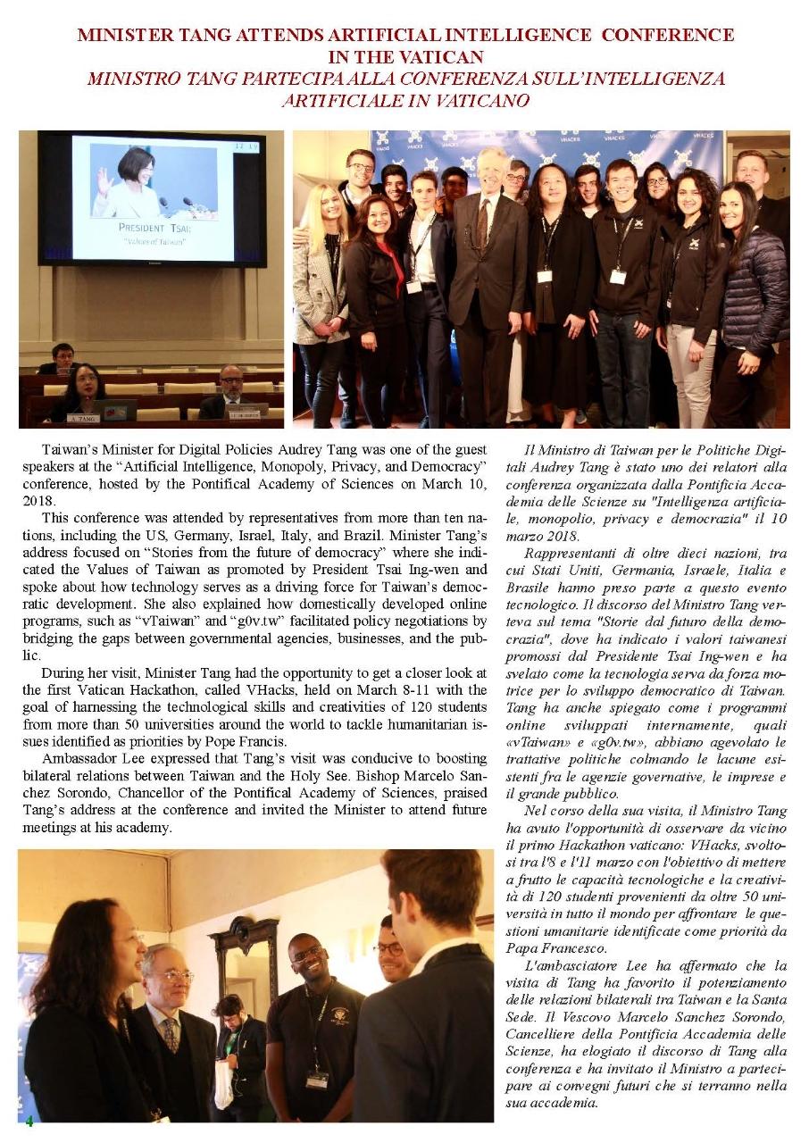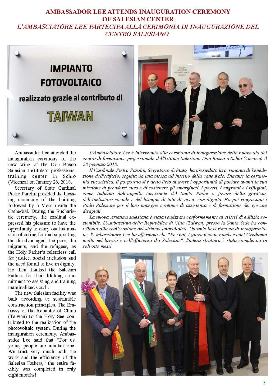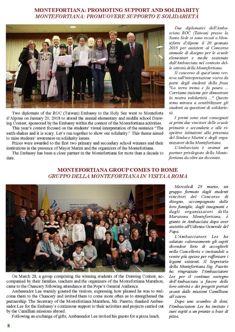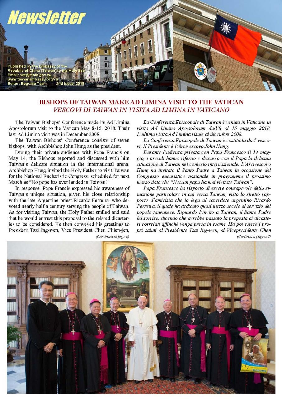 Vatican-Taiwan Newsletter 2nd issue, 2018 - Embassy of the Republic of China (Taiwan) to the Holy See 駐教廷大使館 ::: Skip to main content