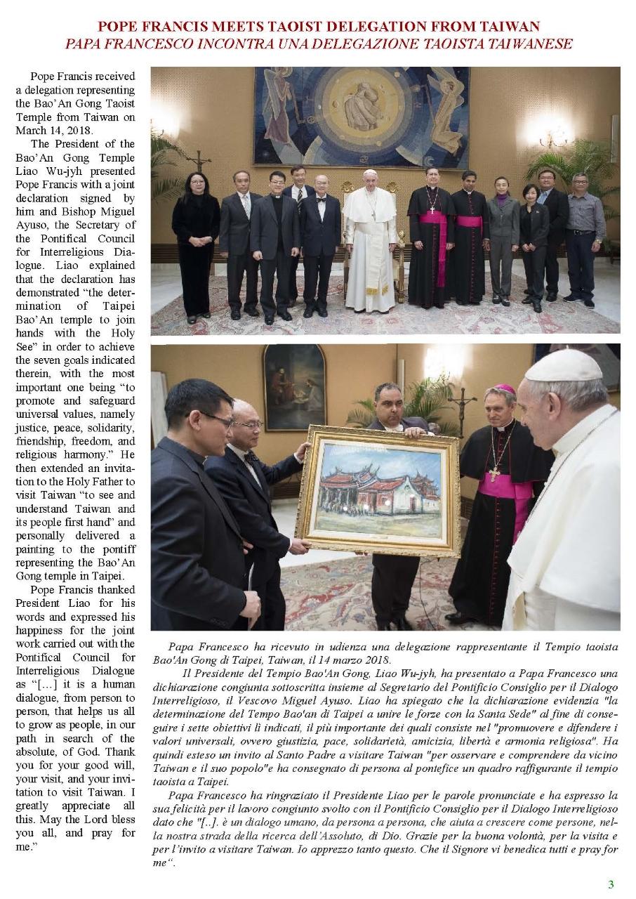 Vatican-Taiwan Newsletter 2nd issue, 2018