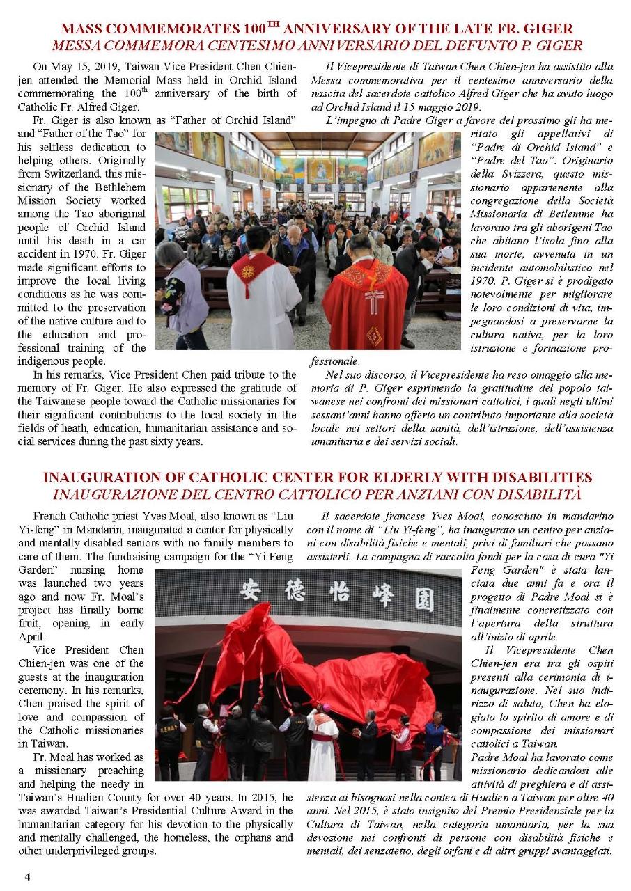 Vatican-Taiwan Newsletter 2nd issue, 2019
