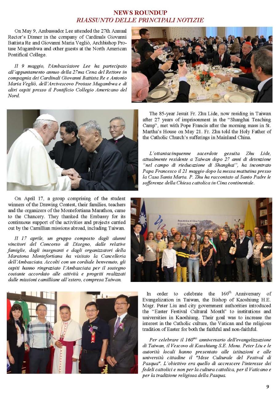 Vatican-Taiwan Newsletter 2nd issue, 2019 - Embassy of the Republic of China (Taiwan) to the Holy See 駐教廷大使館 ::: Skip to main content