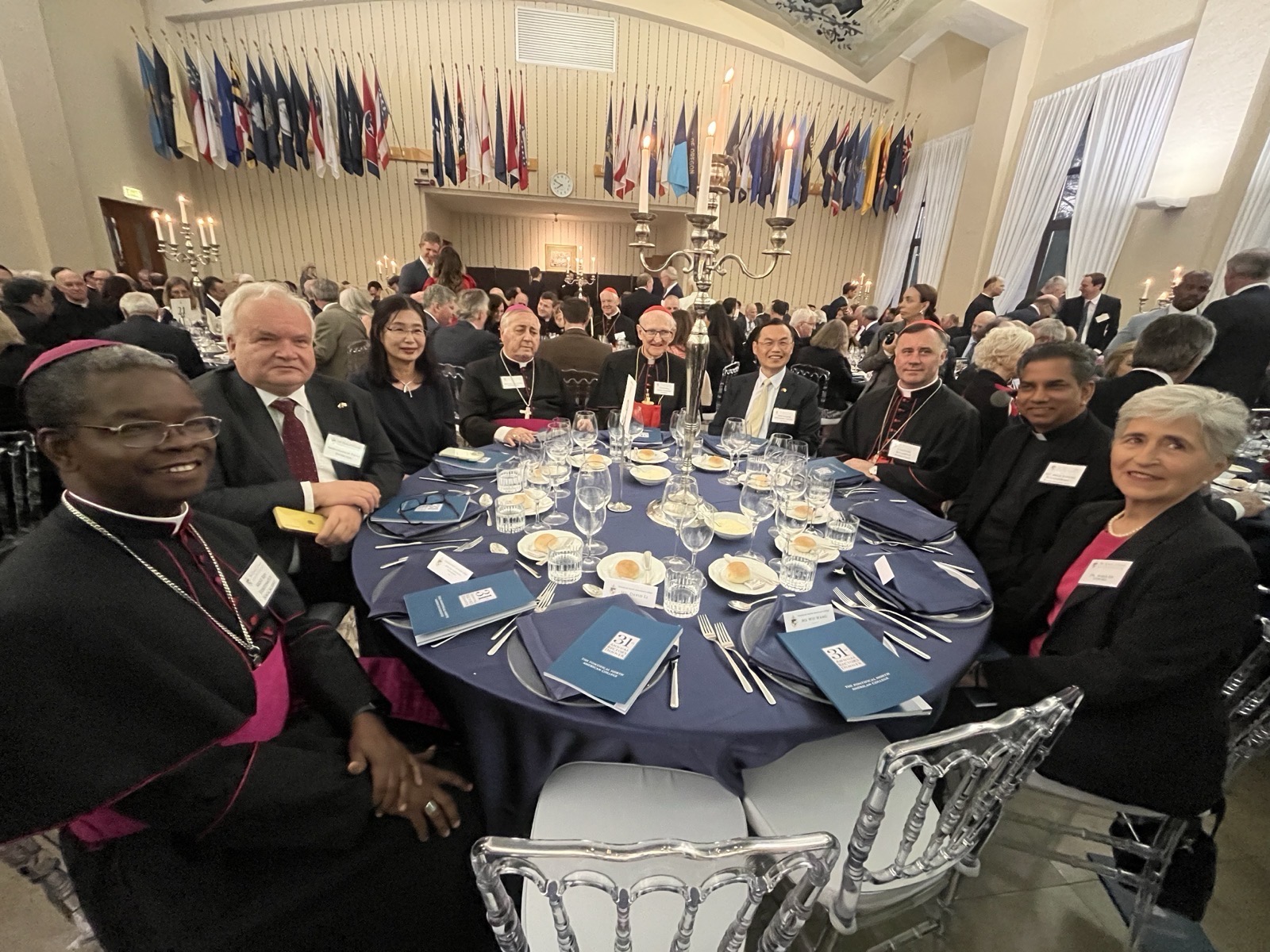 Our distinguished table companions also included Arch. Salvatore Pennacchio, President of the Pontifical Ecclesiastical Academy, Arch. Fortunatus Nwachukwu, Secretary of the Dicastery for Evangelization, Msgr. Indunil J. Kodithuwakku K., Secretary of the Dicastery for Interreligious Dialogue, Ambassador Pavel Svoboda of the Czech Republic to the Holy See, Dr. María Lía Zervino, Member of the Dicastery for Bishops.