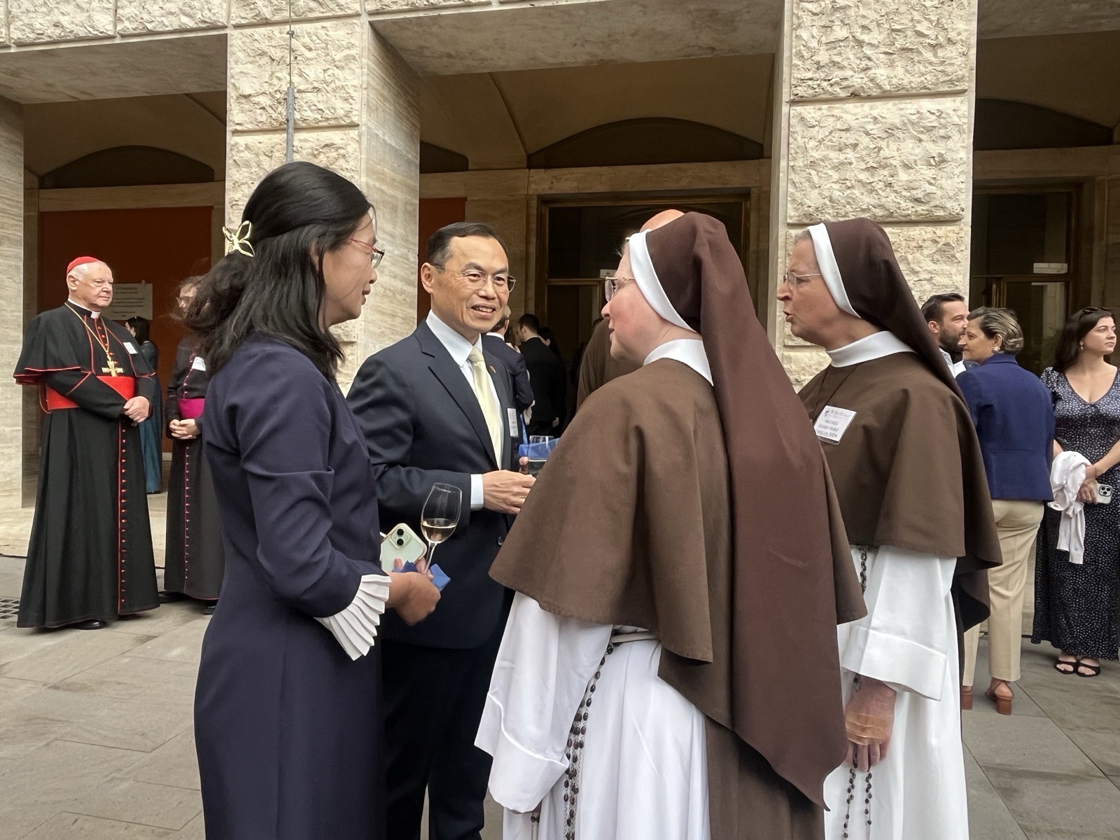 On the evening of April 16, Ambassador and Madam Ho, accompanied by Counselor David Li and Secretary Wei Wang, attended the 31st Annual Rector’s Dinner of the Pontifical North American College. The event brought together over 400 distinguished guests, including Cardinals, Archbishops, Holy See officials, and members of the Roman political and academic Catholic communities.