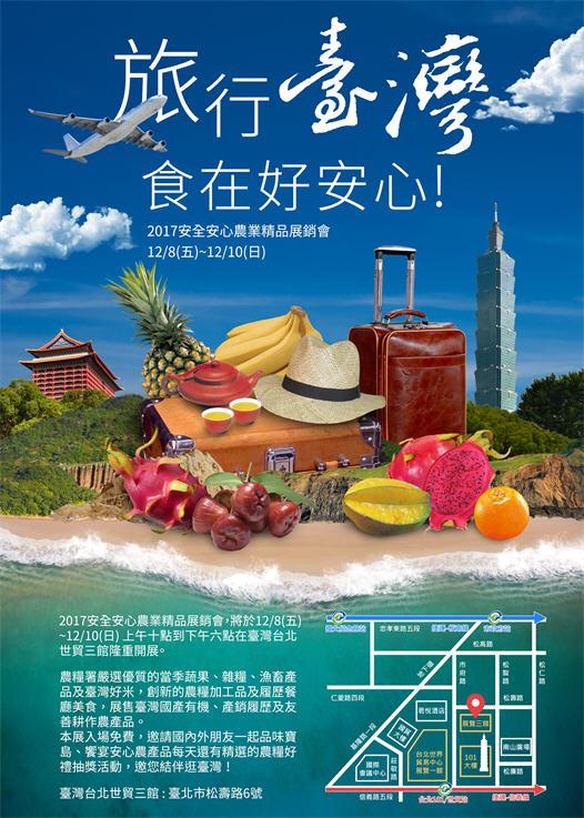 農糧署訂於本(106)年12月8日至10日假臺灣臺北世貿三館辦理「2017安全安心農業精品展銷會」