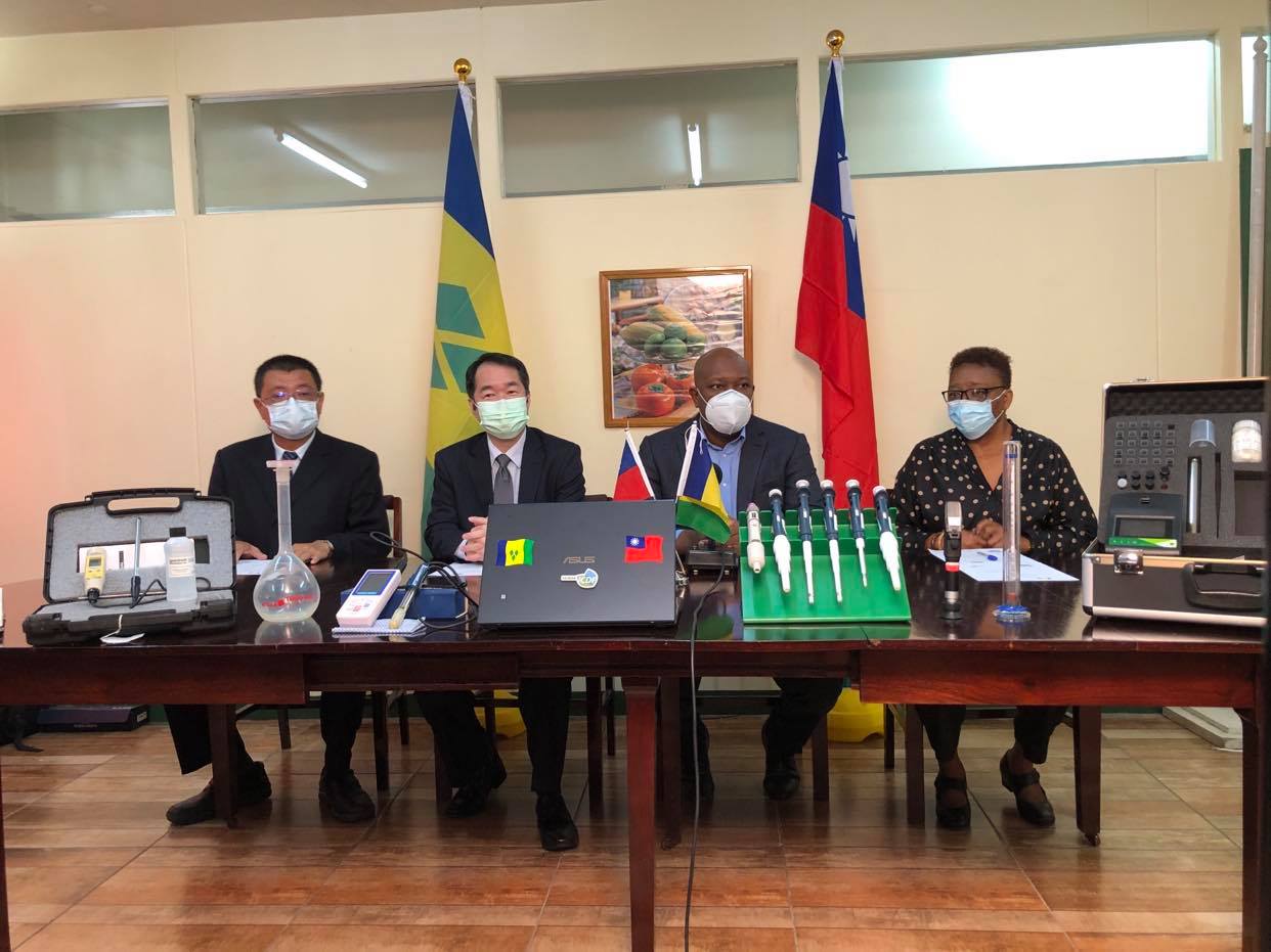 中華民國(臺灣)駐聖文森國大使何震寰於本(110)年3月26日上午代表政府公開贈與「強化農民組織暨提升蔬果生產技術計畫」所屬之133件計畫財產予聖國政府,贈與項目包括耕耘機、噴藥機、堆肥機、土壤檢測儀器、電腦、印表及等辦公設備,由聖國農業部部長凱薩(Saboto Caesar)在農業部代表接受。