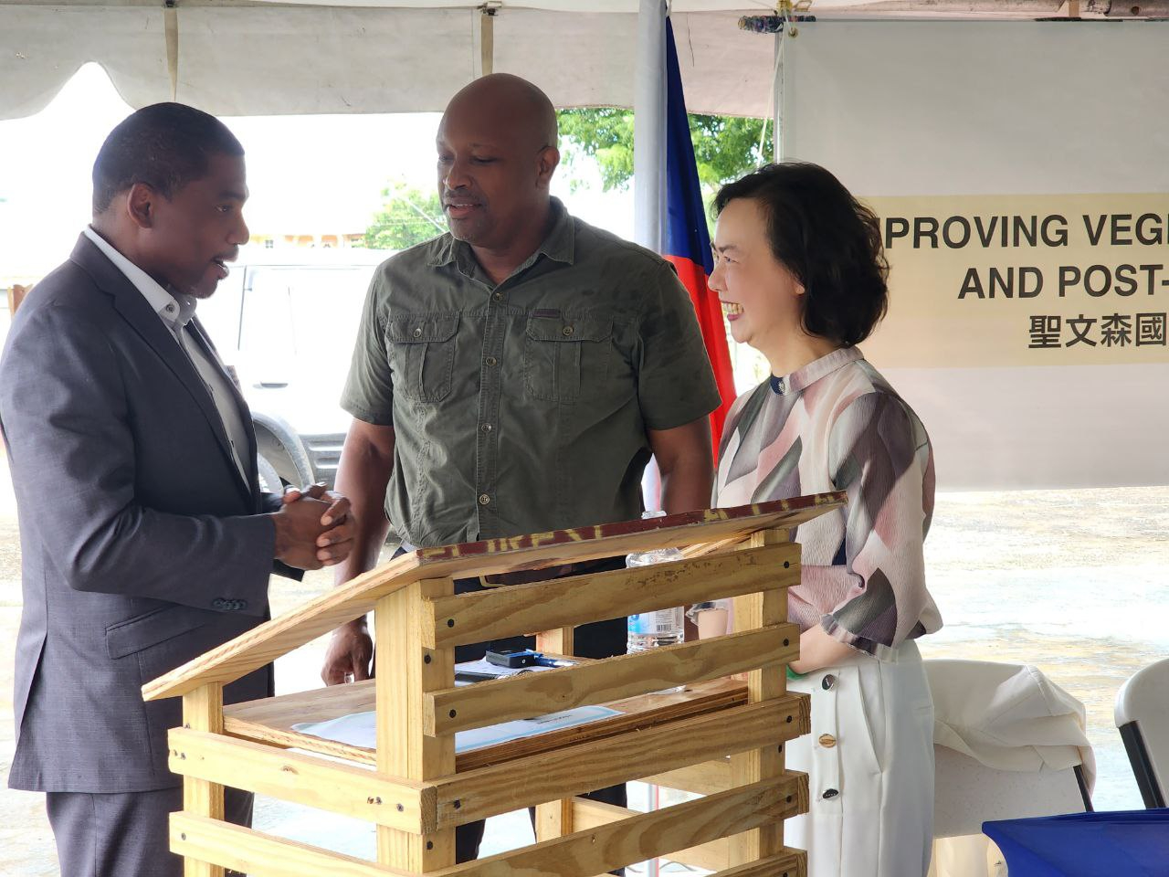 駐聖文森國范大使惠君與聖國農林漁業、鄉村轉型、工業及勞動部凱薩部長(Saboto Caesar)本(112)年8月25日假聖國North Union地區的New Ground Primary School分別代表臺、聖兩國政府簽署該兩項計畫的執行協議,聖國檢察總長Grenville Williams、農業司司長Renato Gumbs、組長Karomo Browne、首席檢疫官Kathian Hackshaw-Herbert、聯絡官Calicia Davis、橘山農場主任Rohan McDonald及Gordon Shallow等農業部官員、本館、團同仁、此間媒體記者及當地民眾等也出席該儀式。在凱薩部長的邀請下,聖克里斯多福及尼維斯德魯總理(Hon. Dr. Terrance Michael Drew)及該國總理辦公室次長Naeemah Hazelle也來到儀式現場,德魯總理鼓勵當地農民為整個加勒比海區域努力從事農業生產,以確保區域糧食安全,並向范大使表示該國與臺灣也即將慶祝建交40周年紀念日。