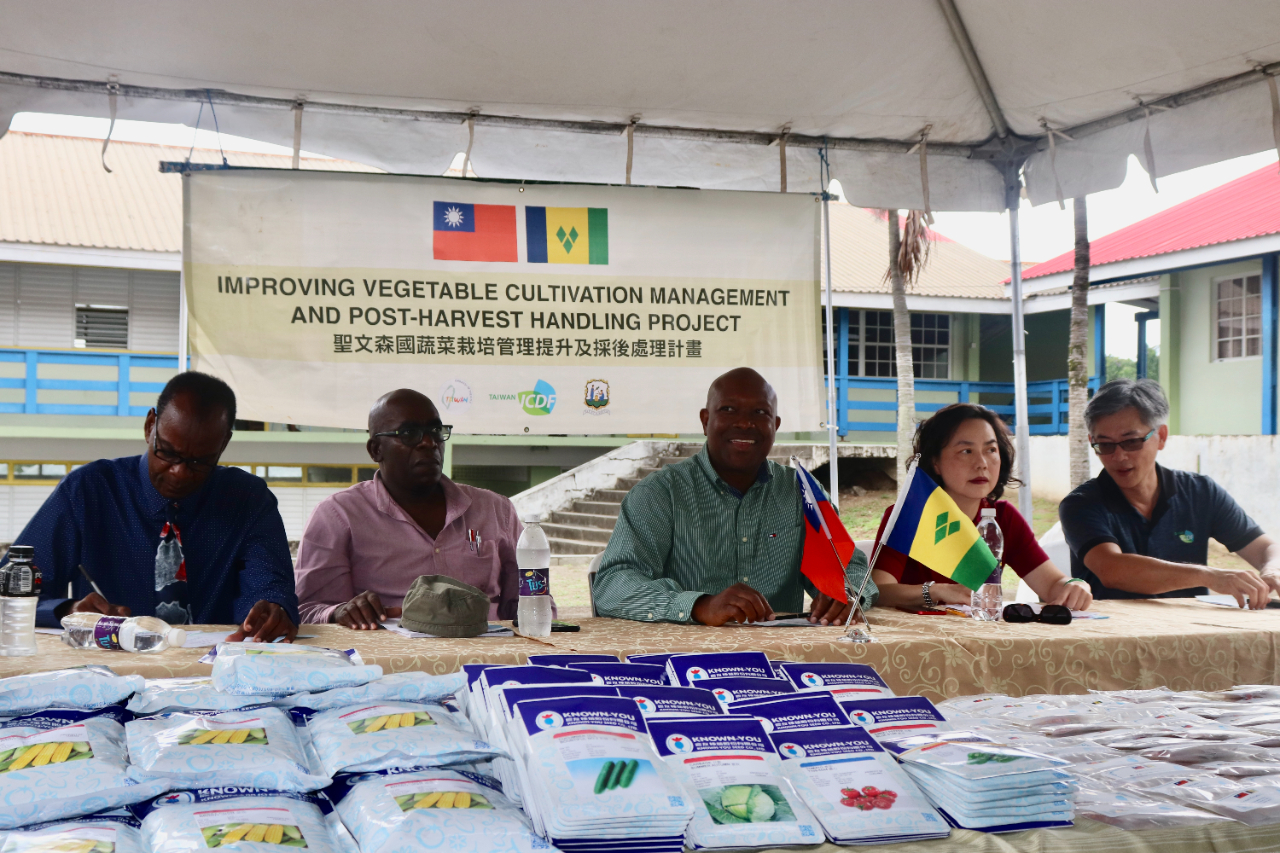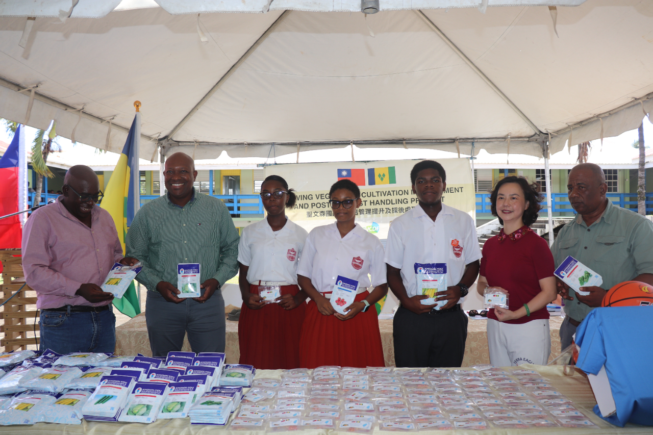 駐聖文森國大使館范大使惠君與聖文森國農業部長Saboto Caesar於2月27日在北部聯盟中學共同主持「家庭園藝及氣候智慧農業」活動暨捐贈典禮。北部聯盟中學校長St. Clair DaSantos、加勒比海農業研究及發展機構(CARDI)代表Donawa Jackson、農業部司長Renatos Gumbs、農業部代理常務次長Trevor Phills及該校全體師生亦到場共襄盛舉。