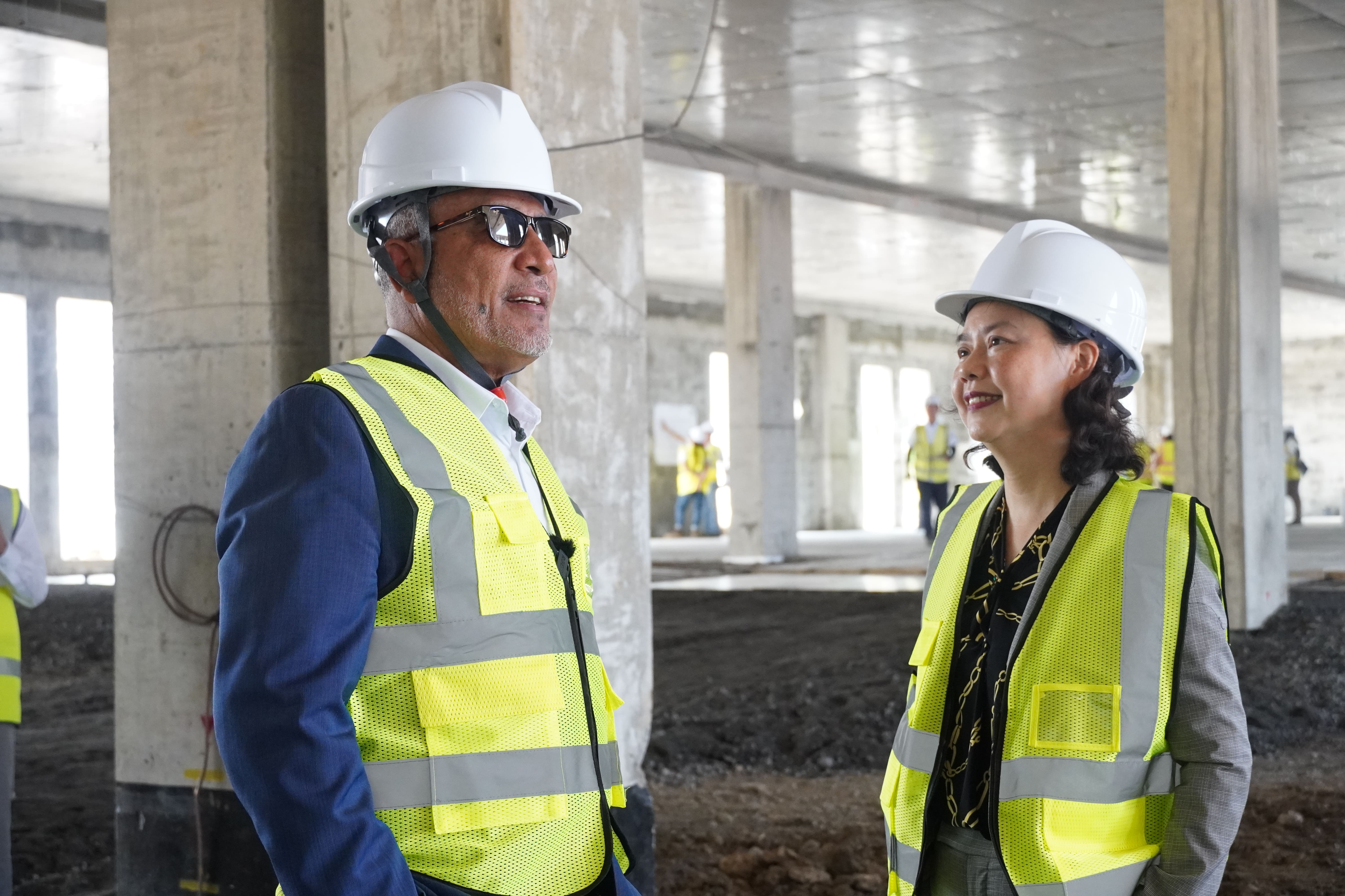 Prime Minister Hon. Dr. Godwin Friday visited the site of Arnos Vale Acute Care Hospital (AVACH) on January 23, accompanied by Deputy Prime Minister Hon. St. Clair Leacock, Minister of Health Hon. Daniel Cummings, Minister of Social Welfare Hon. Shevern John, Minister of Youth Hon. Kaschaka Cupid and Ambassador Fiona Fan.
