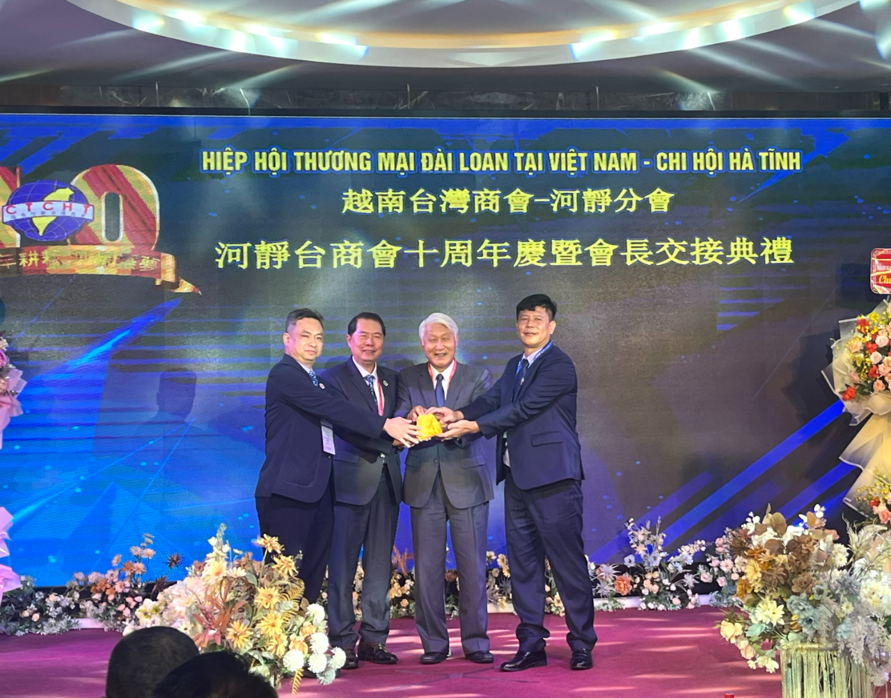 越南臺灣商會聯合總會河靜分會於11月23日舉辦「10週年慶暨第五屆、第六屆理監事交接典禮」,包括駐越南代表處大使石瑞琦、僑務秘書蔡佩珊、僑務委員洪志華、吳明穎、僑務諮詢委員游明達、越南臺商總會總會長蔡文瑞、監事長黃雍正,以及河靜省、義安省政府官員等人與會。