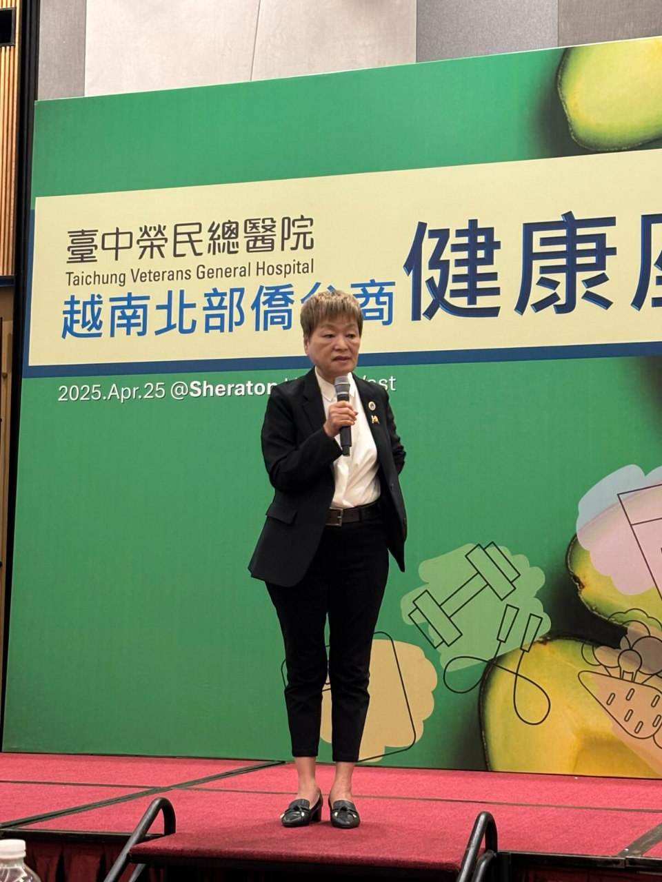 楊玉鳳致詞表示,臺中榮總團隊難得來到河內,希望能分享僑臺商們更多健康的概念,特別是「預防勝於治療」,只有身體健康一切才會好,今天有來自河內、北寧、海防等地區的臺商前來共襄盛舉,如有健康保健相關問題,都歡迎向臺中榮總團隊諮詢。