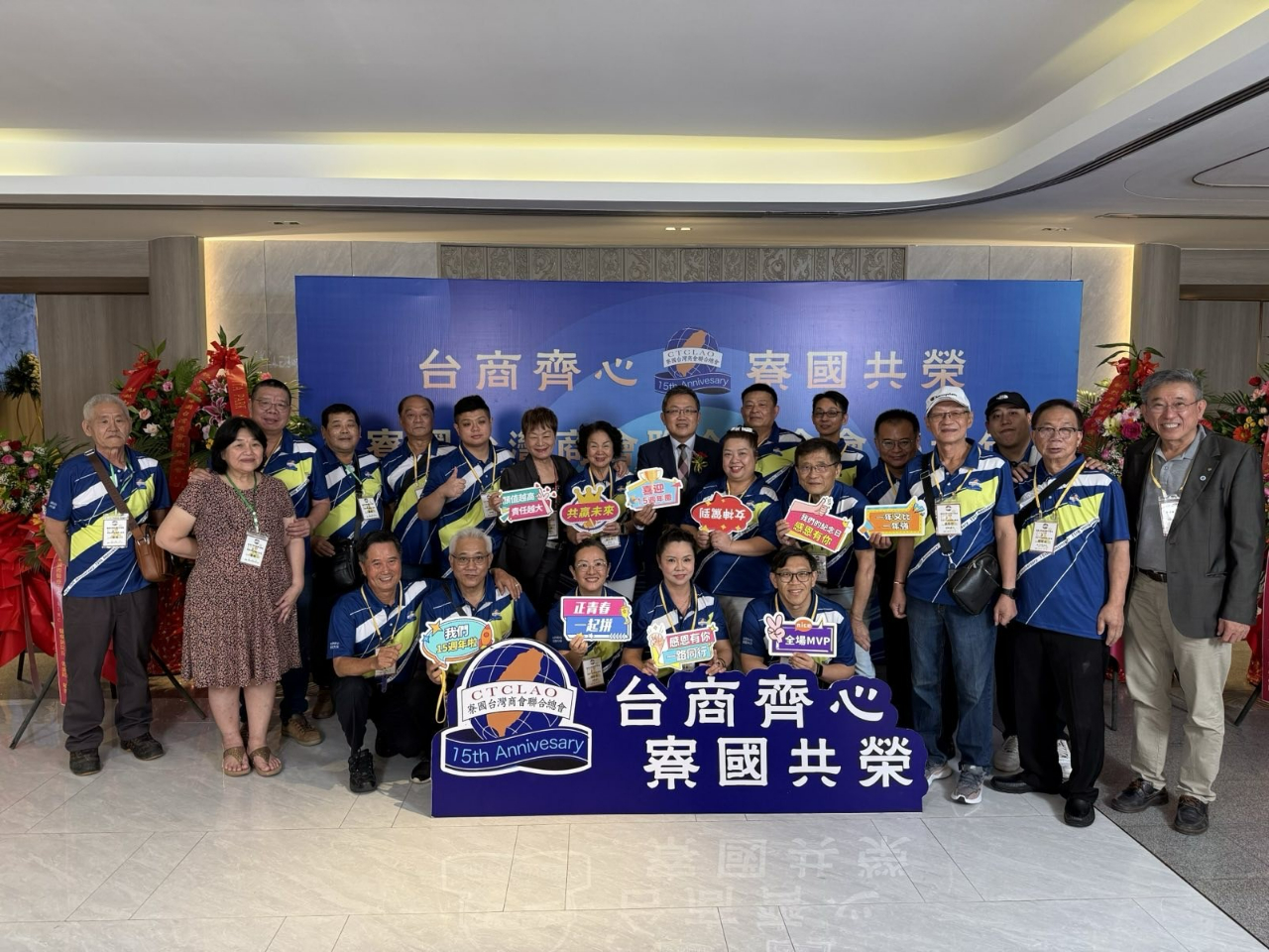寮國臺灣商會聯合總會今年適逢創會15周年,特別於6月7日舉辦「15周年慶晚宴」,由總會長施玉秀主持,駐越南代表處大使劉世忠偕教育組組長朱多銘、秘書白博文、政治組秘書顏銘男、黃子綪、警務秘書郭文宣及僑務秘書蔡佩珊應邀出席。
