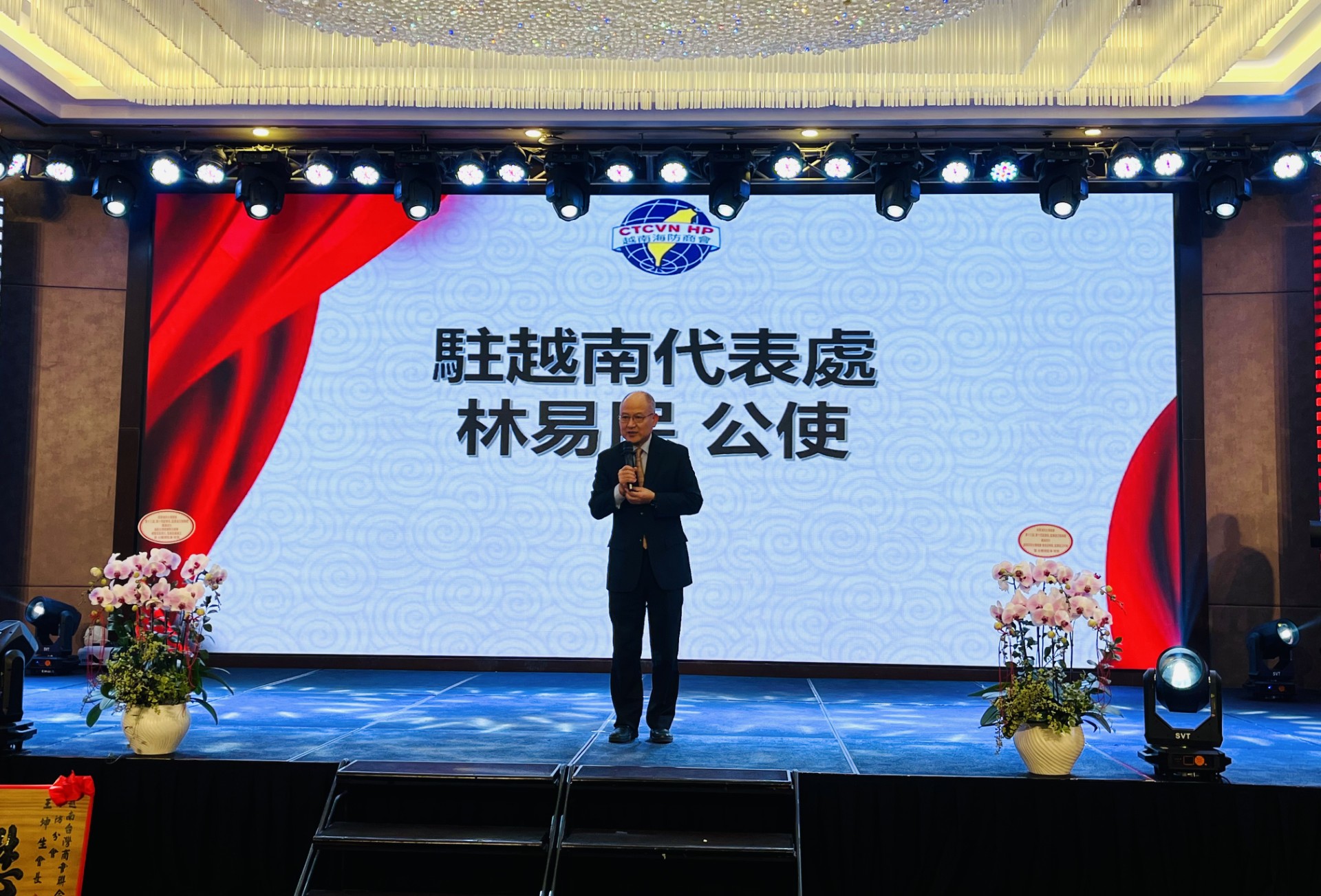 林易民致詞表示,感謝第十三屆會長王坤生這幾年來對商會的貢獻,也恭喜第十四屆會長柯秋木接任,扛起重擔,相信在新任會長的領導之下,海防商會會務將持續蓬勃發展。此外,也強調代表處的重要功能之一,就是服務我們在越南的僑胞,同時扮演臺商和越南政府之間的橋梁,如果各位與越南政府溝通上有任何問題,或是對於法規執行上有疑慮,都歡迎隨時向代表處反映,代表處一定會盡力提供協助,積極與越南政府溝通協調。