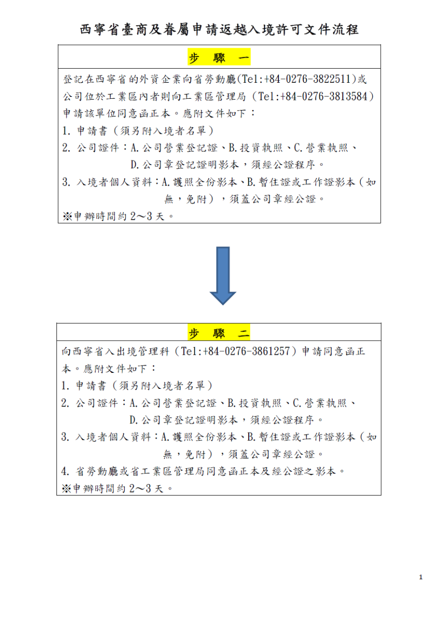 【西寧省臺商及眷屬申請返越入境許可文件流程】(109年12月4日)