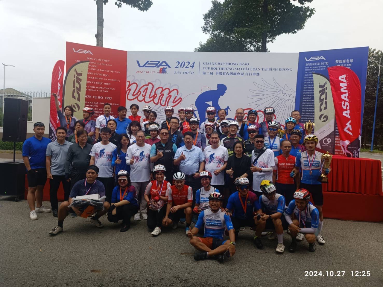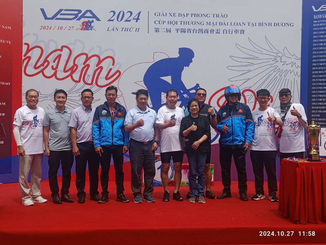 為慶祝中華民國113年雙十國慶,由越南臺灣商會聯合總會平陽分會與越南自行車業聯誼會共同主辦的「越南臺商盃自行車賽」於10月27日在越南平陽省新市鎮的生態湖熱鬧登場,本處處長韓國耀偕同仁出席活動並致詞。