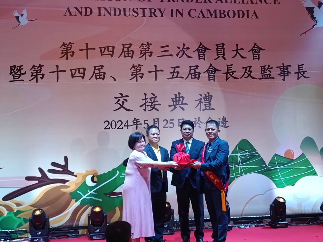 Director General Mr. Han, Kuo-Yao attended the 14th term Board of General Assembly and the 14th and the 15th Chairman and Supervisors’ Hand-Over Ceremony of Taiwan Commercial Association in Cambodia on 25 May 2024.