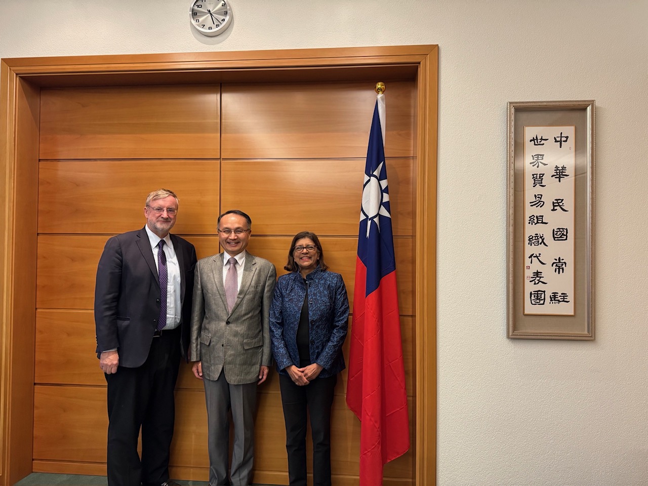 為協助全球開發中國家及LDCs在國際貿易領域強化其國際貿易法律能力,駐WTO代表團於本(114)年10月29日舉辦捐贈儀式,由黃大使昭元代表我政府再度捐贈10萬瑞郎予ACWL,以支持該中心針對開發中國家及LDCs的法律訓練與諮詢工作。 ACWL執行主任Niall MEAGHER表示,台灣之慷慨捐款將用於該中心各項專業法律服務,包括提供法律訓練、法律人才培訓及免費法律諮詢服務,幫助發展中及LDCs會員提升在WTO爭端解決機制及國際貿易體制之參與能力。 黃大使則強調,我國長年支持全球貿易公平、透明及永續發展,本次捐款更彰顯我國支持國際多邊貿易體制之決心及承諾。 本次捐贈儀式結合本團與ACWL之閉門座談,由ACWL撰擬專業法律意見報告,與本團同仁共同探討近期國際經貿局勢演變,獲益良多。本團將持續加強與ACWL之合作,致力維護全球多邊貿易體制之穩定及公平。